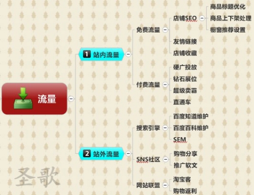 朋友没有给我店铺账号密码,所以对于他们店铺的流量分析就无从做起了,但解决流量问题,我还是可以通过我的思路来说一下有哪些工作分解