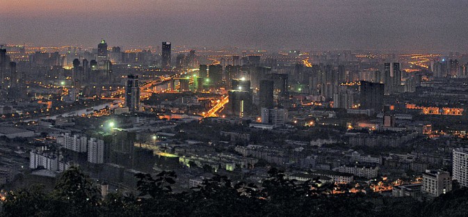 1、我们这里选择的图片是一张夜晚的全景图片。所以首先要对图片进行裁切。截取灯光比较密集,光线比较亮的地方。注意天空的比例尽量小一些。 |