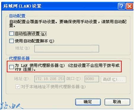 四、点击局域网设置,检查IE是否设置了代理,如果有请取消,如上图所示