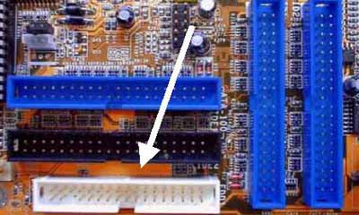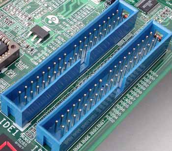 软驱接口共有34根针脚,顾名思义它是用来连接软盘驱动器的,它的外形比IDE接口要短一些。
