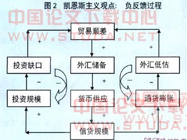 其中,从相对于国内储蓄能力不足的国内投资需求出发,存在缩小国内储蓄剩余的负反馈调整过程:“投资需求不足→国内吸收能力不足(低于国内供给能力)→净出口增加(吸收国内供给能力)→国际贸易顺差增加→外汇储备增加→货币供应(以及信贷规模)增加→投资规模增加→投资需求增加”。从相对于国际收支基本平衡目标低估的人民币汇率出发,存在促使人民币实际汇率升值的负反馈调整过程:“汇率低估 → 净出口增加(吸收国内供给能力)→ 国际贸易顺差增加 → 外汇储备增加 → 货币供应(以及信贷规模)增加 → 投资规模增加 → 有效需求增加 → 通货膨胀率上升 → (实际)汇率升值”。