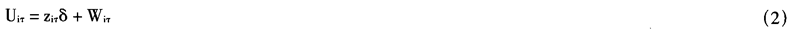 假设技术非效率Uit是一些解释变量Ziτ和待估参数δ的函数,技术非效率Uiτ的函数为: