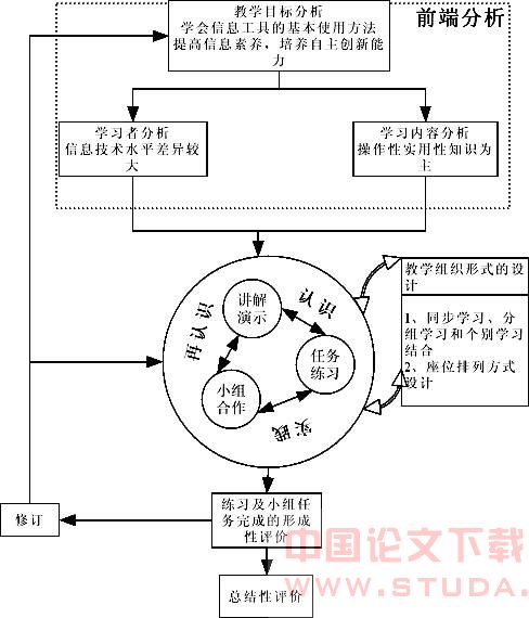 中学学信息技术课堂教学过程的设计要围绕教学目标,突出重点,突破难点,讲、练时间分配要合理;也可以相互穿插;要以学生为主体,引导他们先进行探索式实践,再把实践得到的知识运用到实践中去。可以把同步学习、分组学习、个别化学习相互结合,相互穿插,做到教师主导,学生主体的灵活结合,发挥教师的主导作用,调动学生的自主学习能力,培养学生的创新能力。要留足学生操作、讨论的时间;要灵活运用教师引导、自学探究、任务驱动等多种教学方法。切实做到师生互动、及时反馈。网络环境下的协作式学习,应成为信息技术课的主要学习方式,善于综合运用多种教学组织形式,使不同层次的学生都能得到提高。在分组安排练习或布置小组任务时,最好要兼顾到不同层次学生的学习需要,要注意其差异性要充分发挥学有所长的学生的积极作用[3]