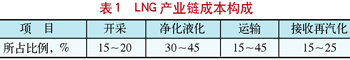 1. LNG产业链各环节成本构成