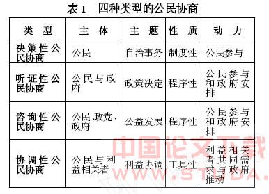 上述四种公民协商,有的来自制度安排,有的来自基层社会的自我创造。在其中,公民都扮演了重要角色。但在实践中,这四种不同类型的公民协商之间的边界并不清晰,常常混用,相互替代。这种相互替代,在模糊不同类型公民协商的同时,也模糊了基层民主成长的方向。表面上,基层民主生活因有多种形式的公民协商,而呈现出多姿多彩、轰轰烈烈的局面,但在用什么民主形式解决什么问题、或者说什么样的问题该用什么民主形式来解决这样基本的问题被模糊的条件下,公民正确运用和驾驭基层民主机制的能力就受到影响。他们既不能无视眼前的民主,但又无奈于这些民主所可能产生的效果。所以,要使公民协商真正成为公民手中的政治资源,就必须让公民明晰地了解基层社会有几种公民协商机制可以运用,各种公民协商机制的功能分别是什么。明晰了这些,也就明晰了公民在基层民主中的地位和拥有的政治资源,从而也就明晰了公民进行有序参与的空间、渠道和可能的影响力。因此,有必要将上述四种公民协商整理列表(见下页表 1) 。