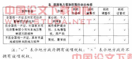 另外.对于一些中央和地方的共享税,一般由中央政府进行统一税收管理.并将地方政府应该享有的份额直接划拨为此为了规范管理.中央必须从制度使予以制约.建立健全税收立法审批制度.监督、引导地方税收立法.合理确定地方政府的税收权限一上述关于划分税权的基本认识.可以通过下表进行简明反映: