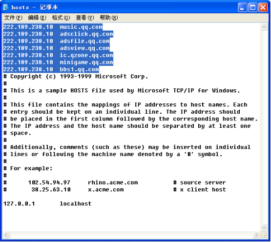 3、将与qq.com相关的条目全部删除。